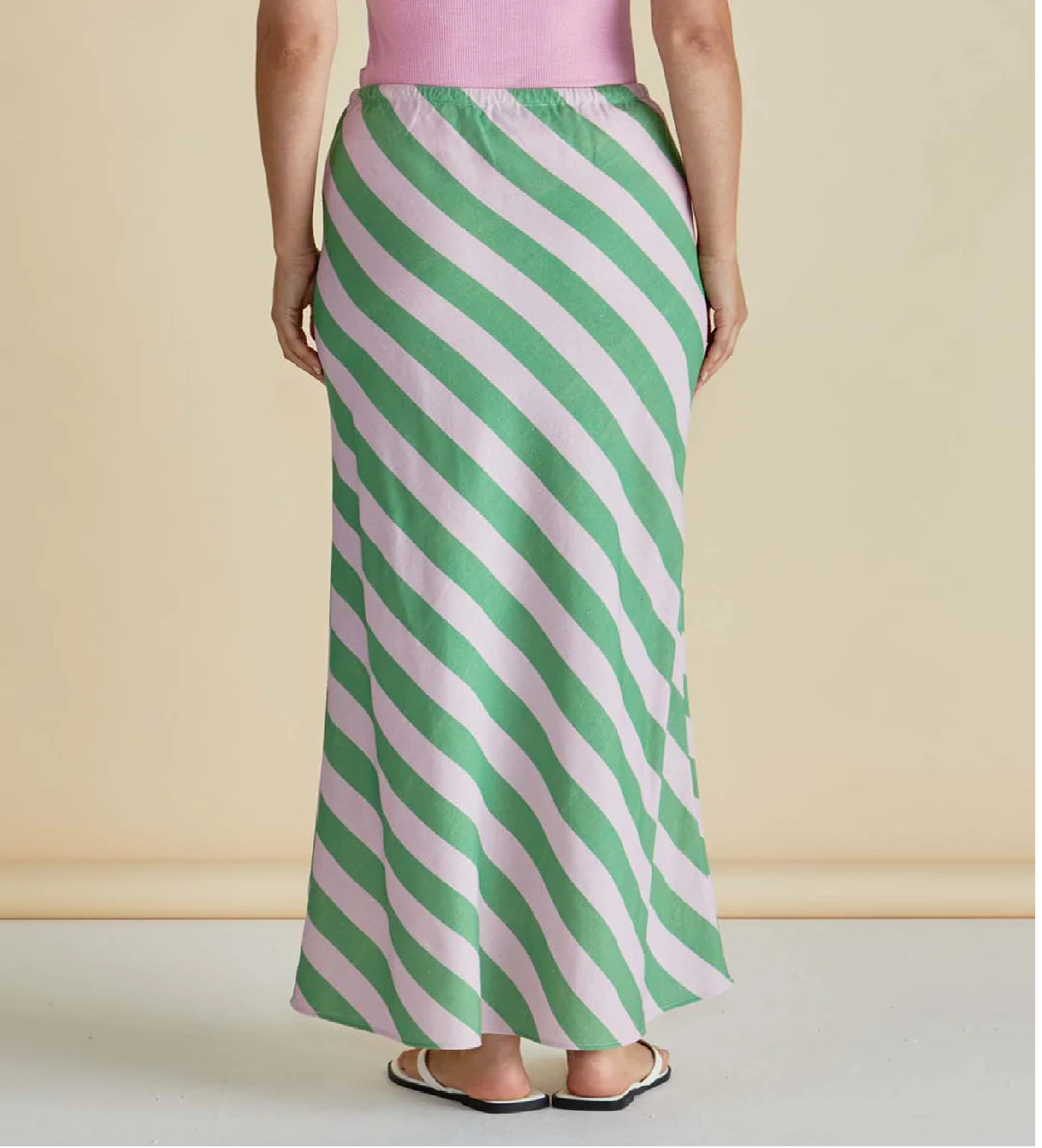 Step out in easy, everyday comfort with the Brooke Bias Skirt in Green/Pink Stripe by Betty Basics. Designed with a soft drape and diagonal stripes that elongate the body, this skirt brings a fresh pop of colour to your warm-weather wardrobe. The bias-cut shape flows beautifully, while the adjustable drawstring waist ensures the perfect fit every time. Effortless Style. Made for Living.
