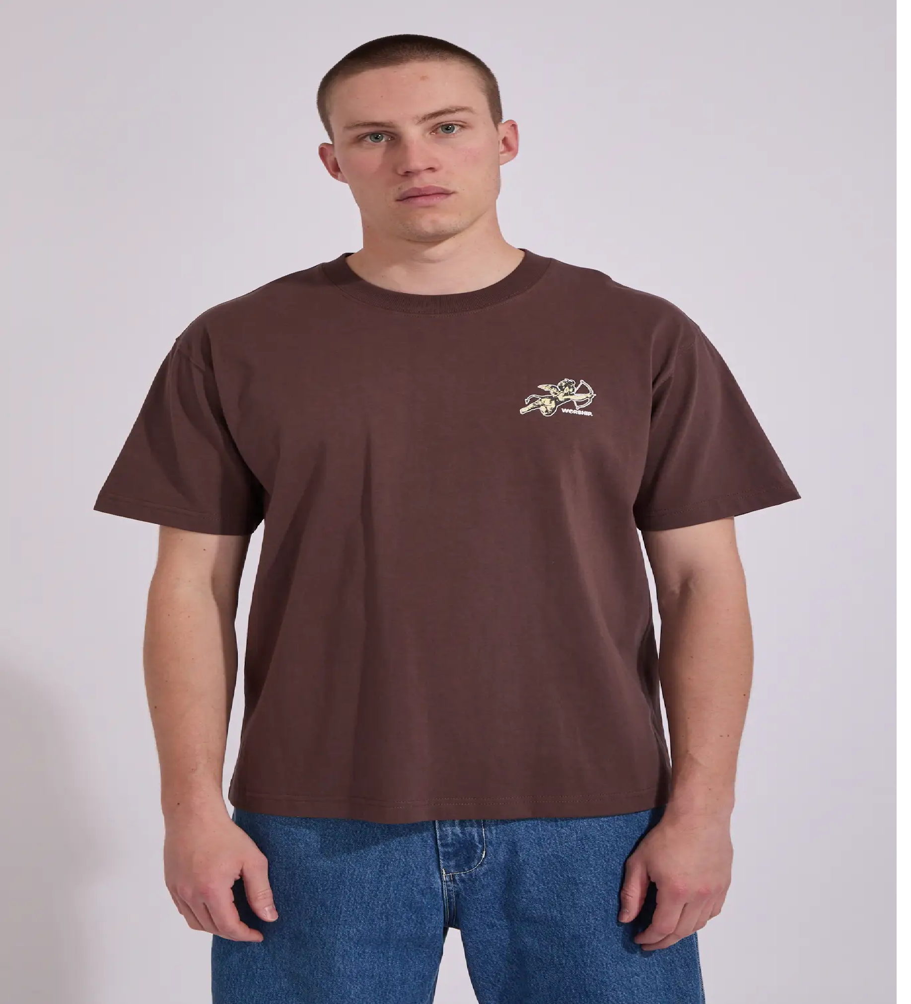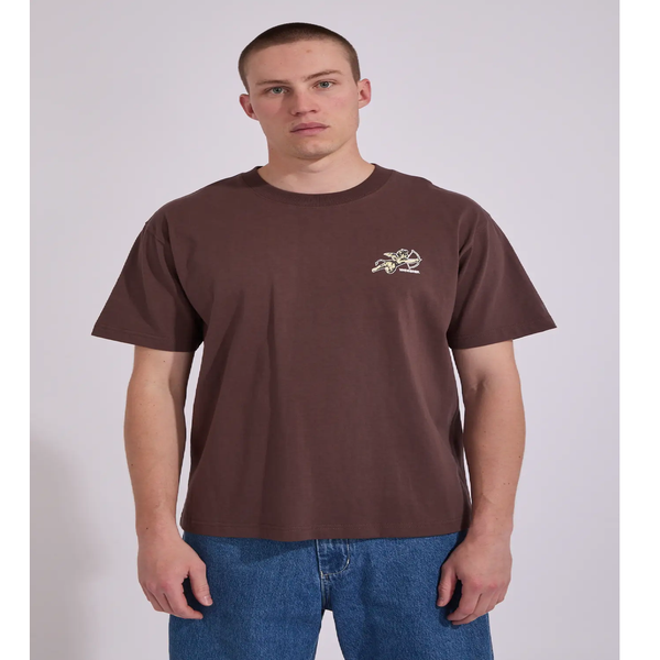 Made inside the gates of heaven and blessing us with it's sick-ness every day, it's none other than the Cherub T Shirt from Worship. With its rich chocolate colourway, worship graphics and classic fit - it truly is the best!