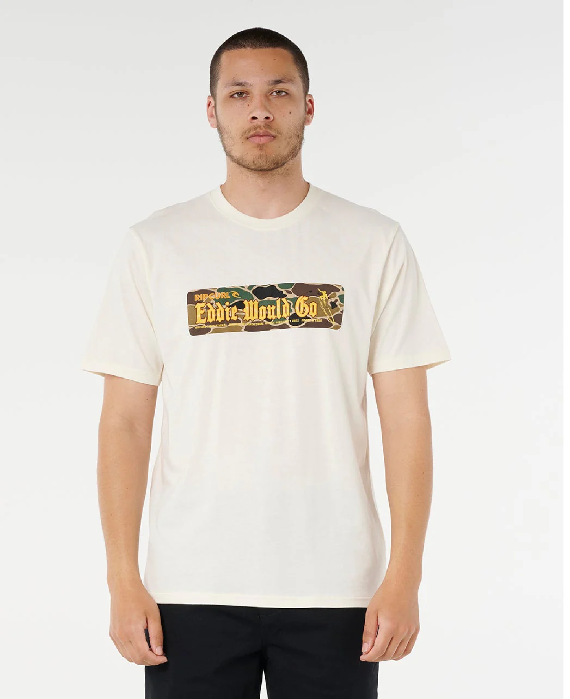Relaxed fit and soft cotton jersey with short sleeves set the vibe for this tee. Featuring bold front print and woven flag label, the Eddie Would Go Sticker Tee keeps surf culture alive and easy.
