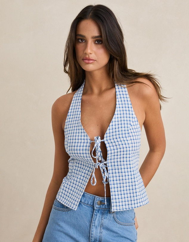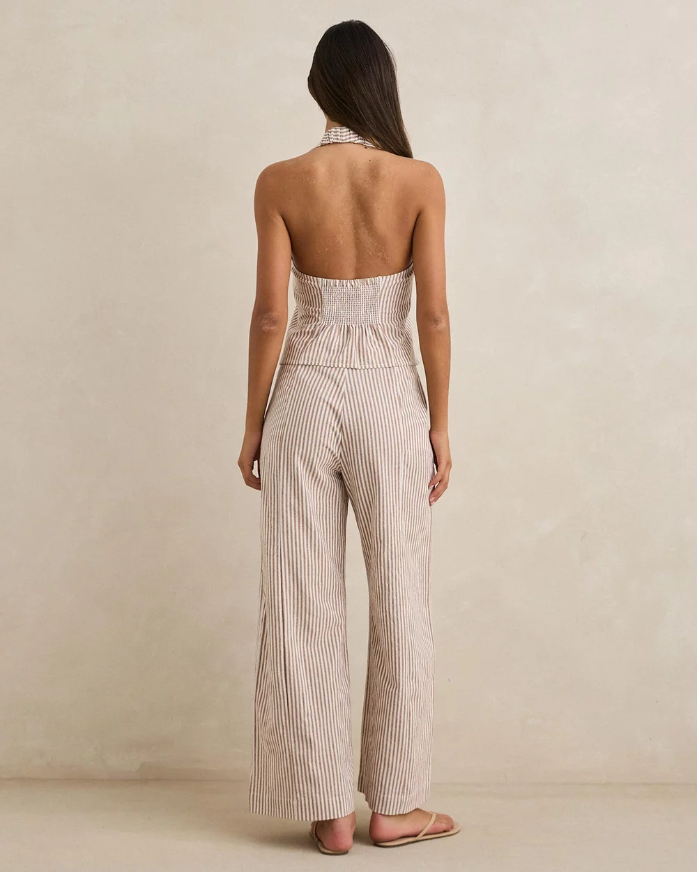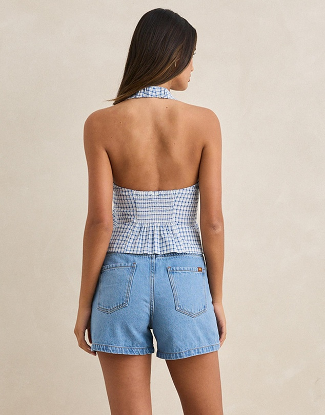 The Louise Check Halter Top by Rhythm is a playful cropped style with an open back and adjustable halter tie. Cut in a soft cotton check weave, it’s lightweight yet structured, giving an elevated vintage feel that’s perfect for long summer days. Pair with your favorite denim or with the matching Louise Drawstring Pants to complete the look.