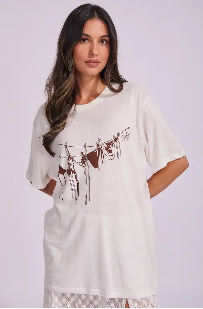 The ultimate post-beach layer, Rhythm's Melia Oversized T Shirt is light, breezy, and easygoing - just like your lifestyle in the summertime!