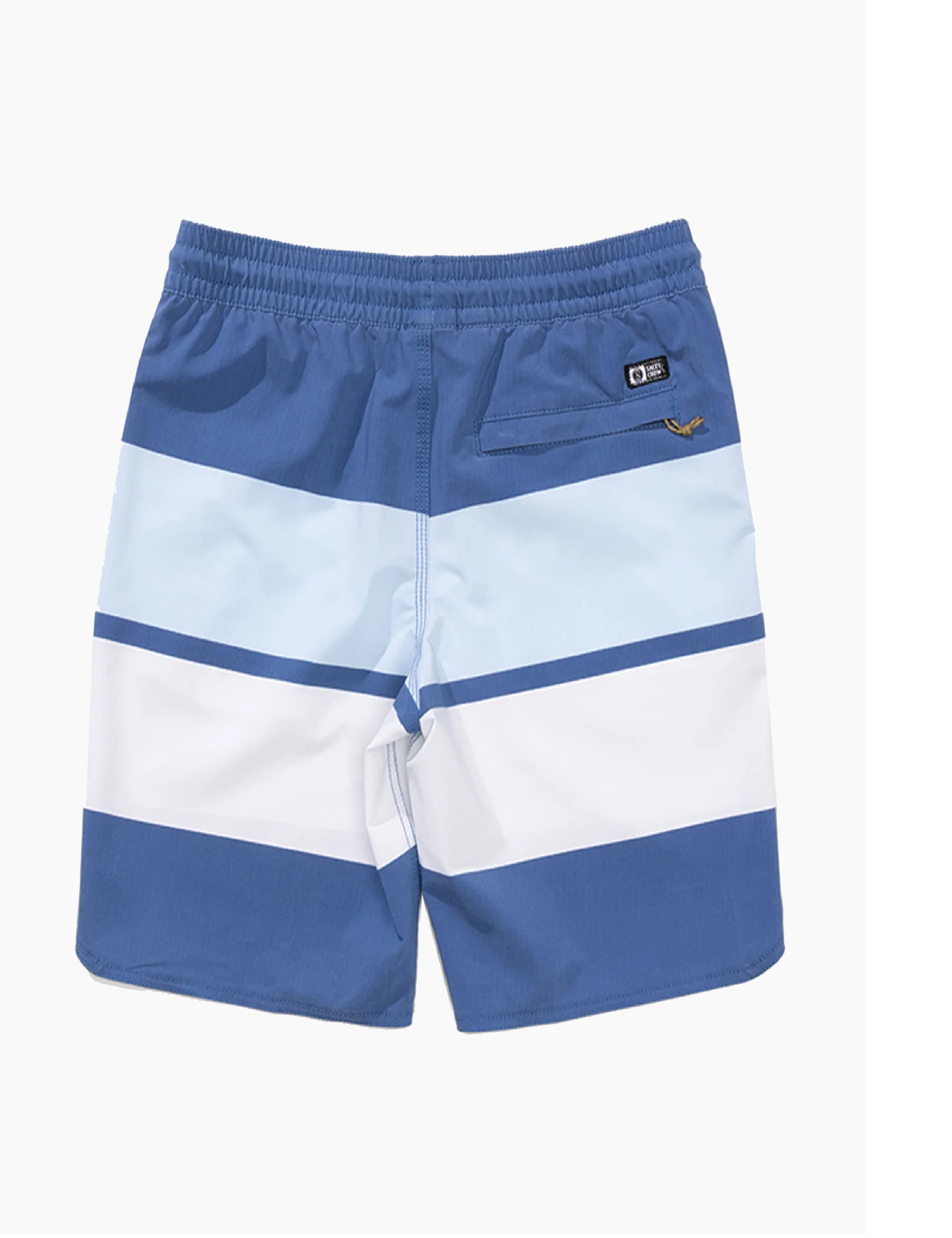 he Session Boys Volley Boardshort in True Navy is an elasticated short featuring a two-tone drawcord, 4-way stretch quick-dry fabrication, and a lower right zipper patch pocket. Made from recycled polyester and elastane fabric for performance and comfort.