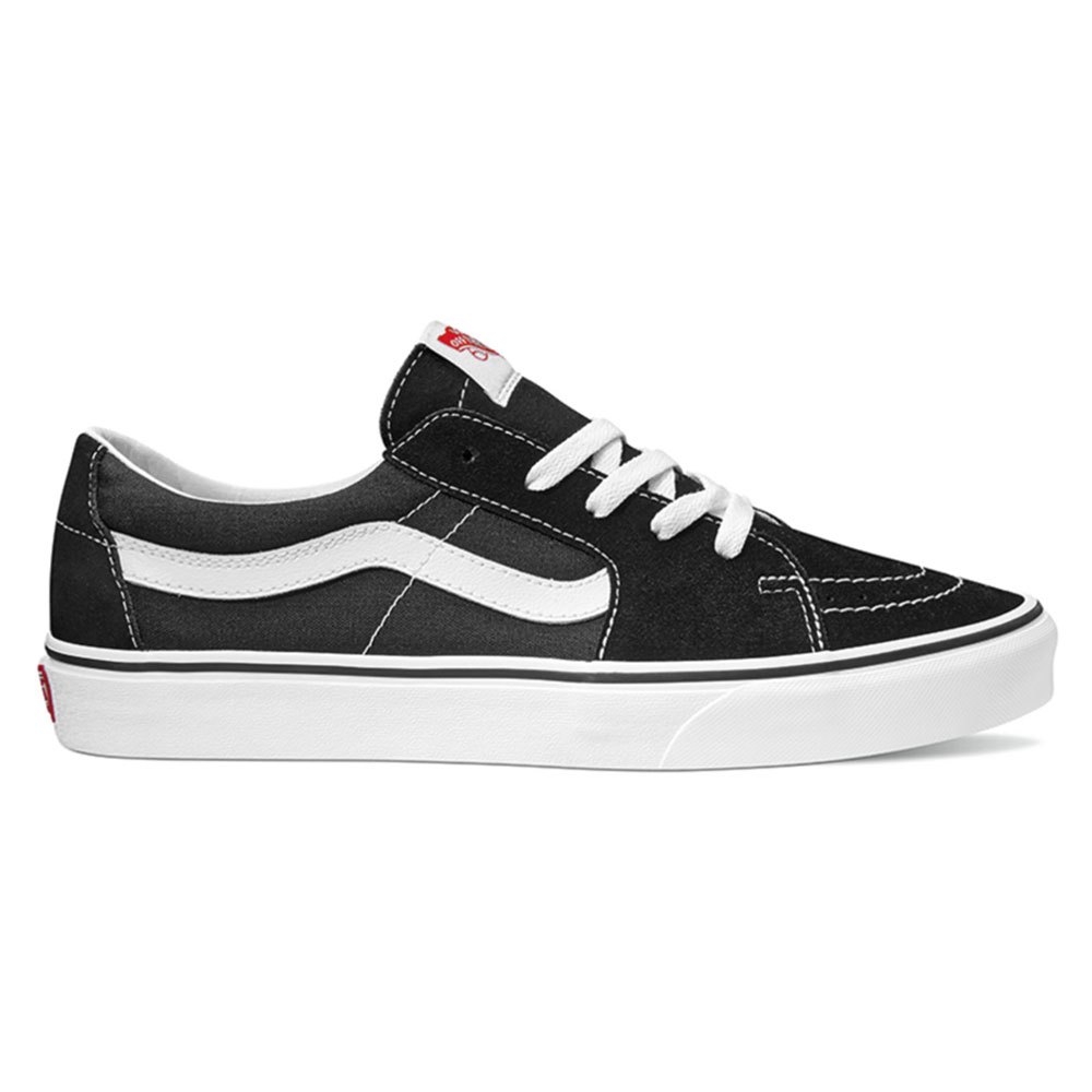 The Sk8-Low, a takedown of the legendary Vans high top skate shoe, is built with an array of colors and materials to provide a familiar Sk8-Hi aesthetic in a low top shoe. Featuring sturdy canvas and suede uppers, the Sk8-Low also includes re-enforced toe caps to withstand repeated wear, padded collars for support and flexibility, and signature rubber waffle outsoles.