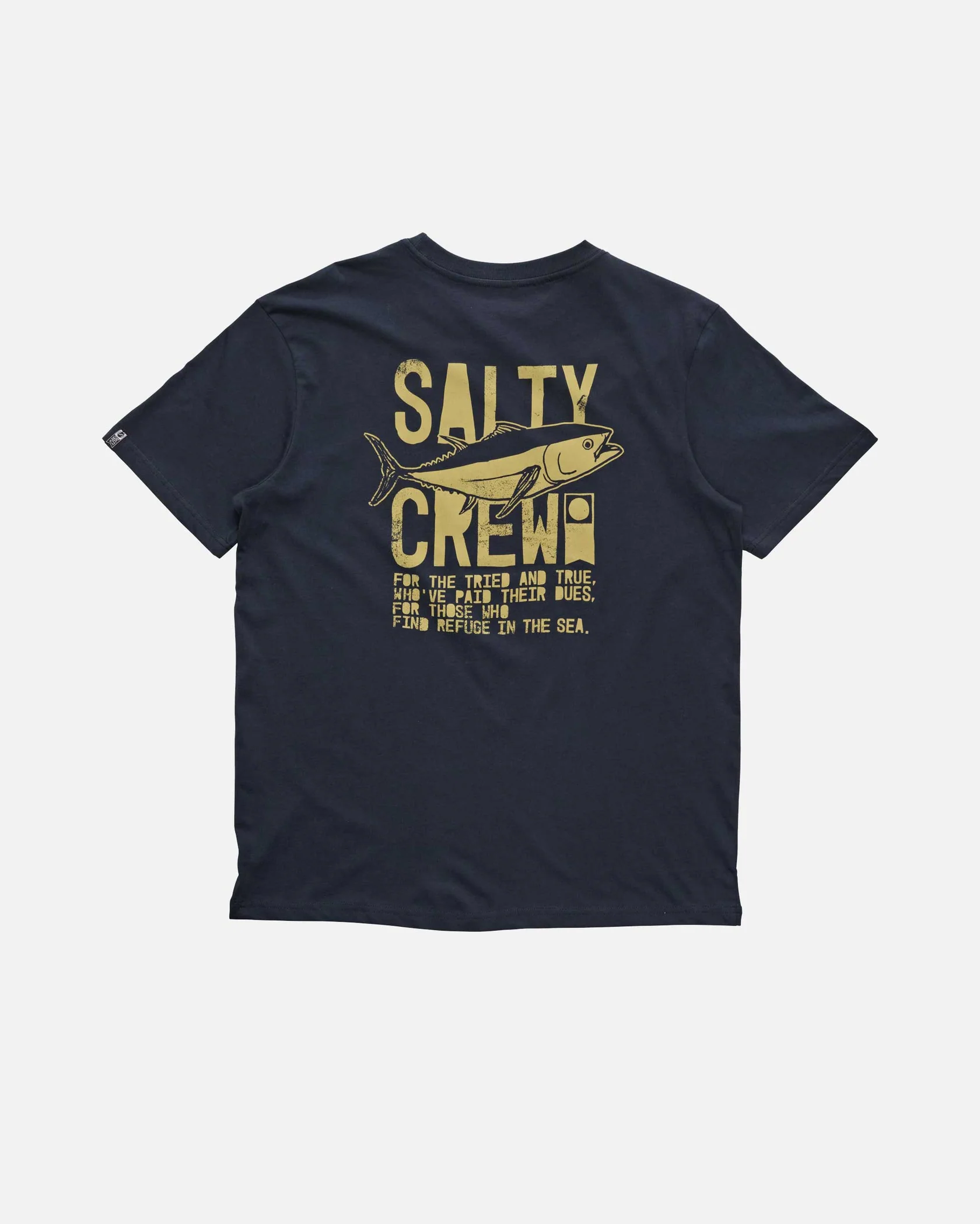 Tried and True Premium SS Tee in Navy is made from soft spun cotton jersey, 160gsm in weight. Finished with Salty Crew clamp label at sleeve hem. Screen printed front and back prints.