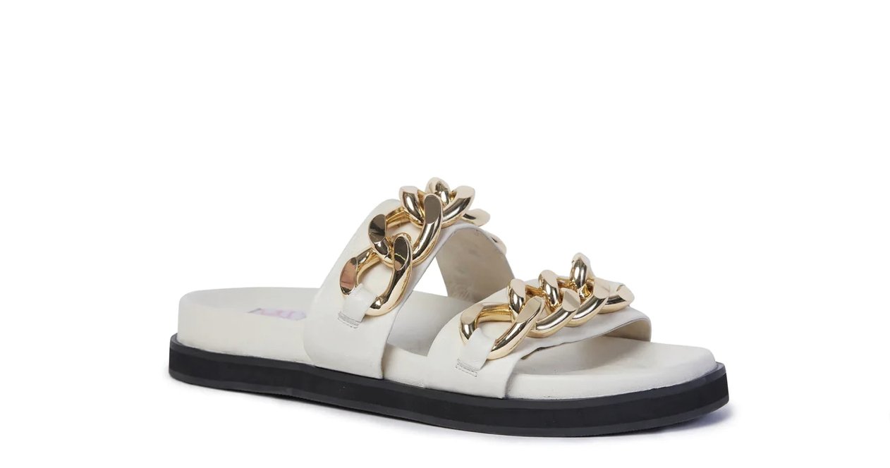 With a slight platform base, the Verona Slide evokes an elevated day time mood. Shaped with double strap and gold curb chain detailing. Assembled in the softest leather and set on a comfortable moulded insole.